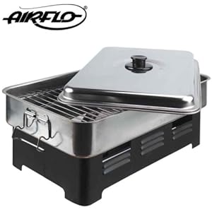 Airflo smoker a quick and delicious way to cook. just light the meths burner under unit sprinkle sawdust on base of smoker add food and put lid on. enough room for upto two 3lb trout